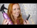 ASMR Haircut roleplay featuring fabric, spraying, cutting, hair brushing and a head massage.